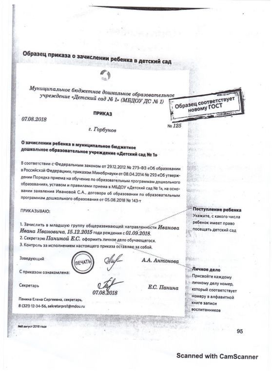 Образец приказа о зачислении ребенка в детский сад 001 (скачать) (посмотреть)